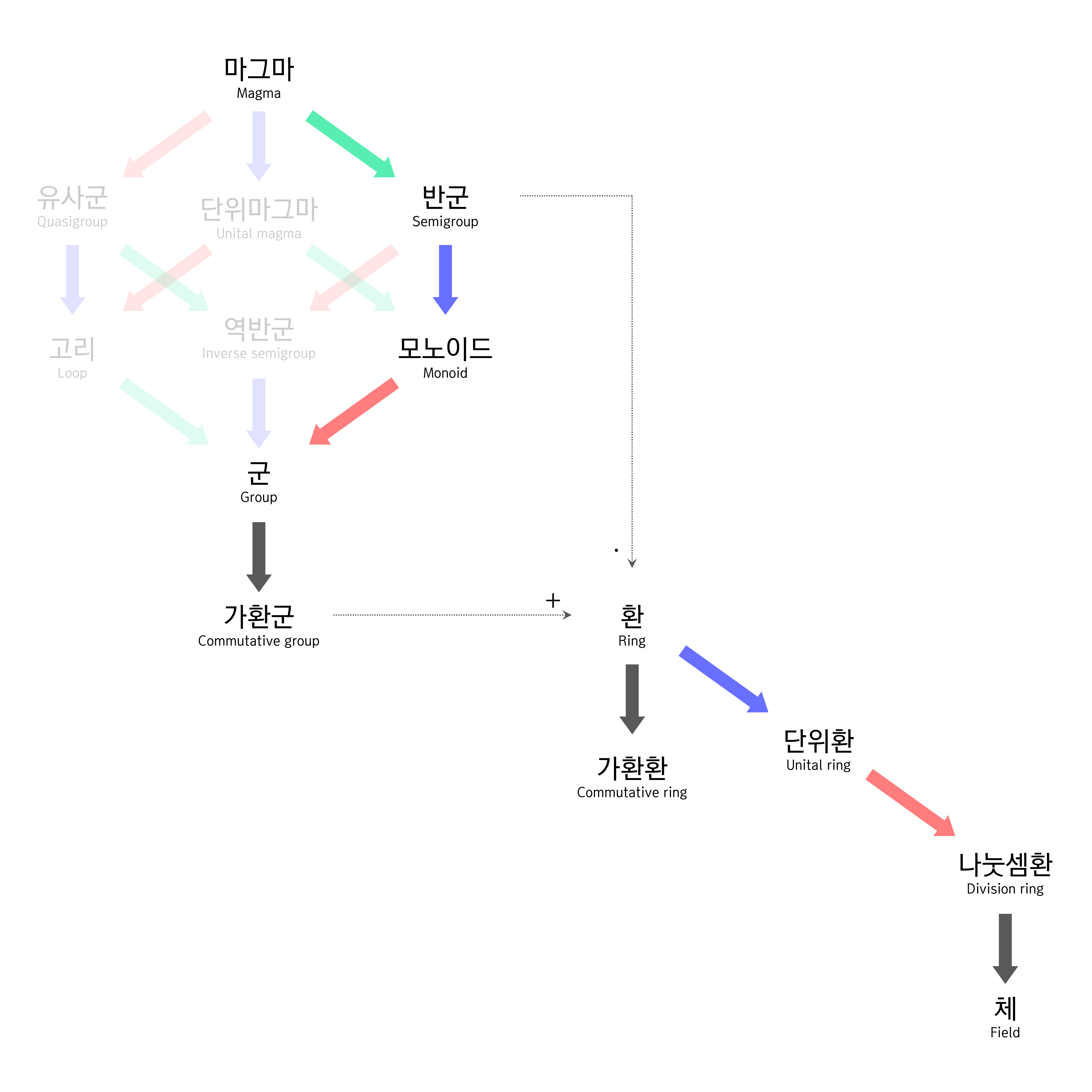 ※ 단위환과 나눗셈환 사이에 있는 대수구조인 정역(integral domain)을 활용하여 체를 정의하기도 한다. 다소 비주류적인 정의방법이지만 이쪽도 충분히 가치있다.